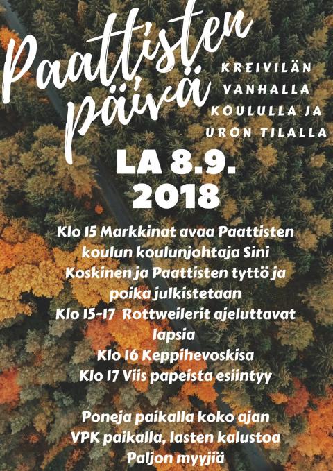 Paattisten päivä 2018 on Kreivilän koululla & Uro:lla, klo 15-19.